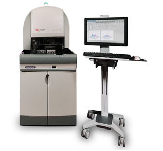 Termociclador PCR em tempo real e analisador de fusão de alta resolução com 5 canais mais canal HRM (High Resolution Melt - para detecção de mutações, polimorfismos e diferenças epigenéticas em amostras de DNA de fita dupla), com suporte a reações multiplex, otimizado para aplicações clínicas.